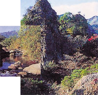 <小京都・「秋月」と古処山の原生林>小石原川の上流、野鳥川に沿う城下町秋月、13世紀以来の文化が山里に散在する。源流の古処山には貴重なツゲの原生林がある。 |