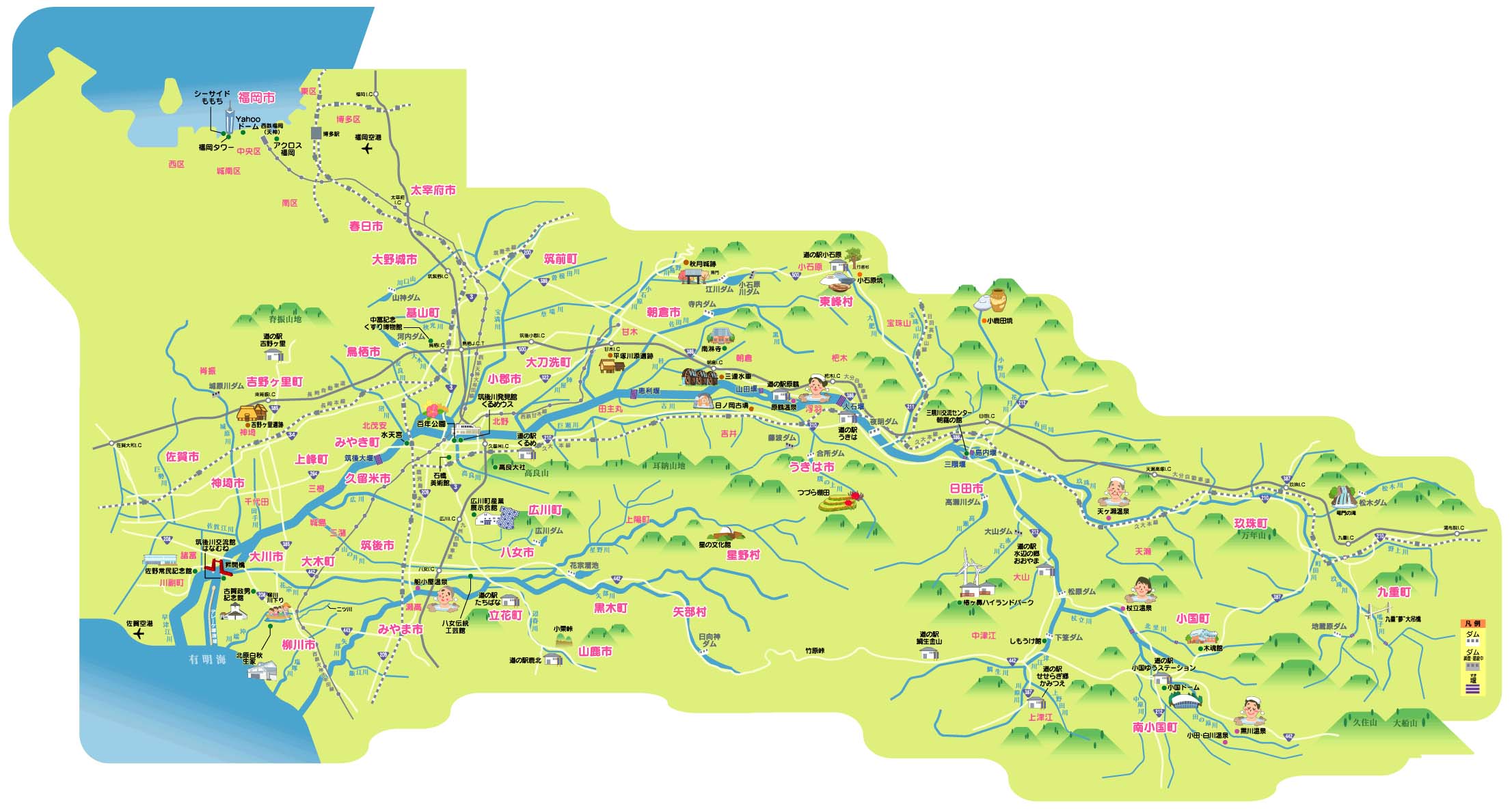 筑後川流域交通アクセス略図